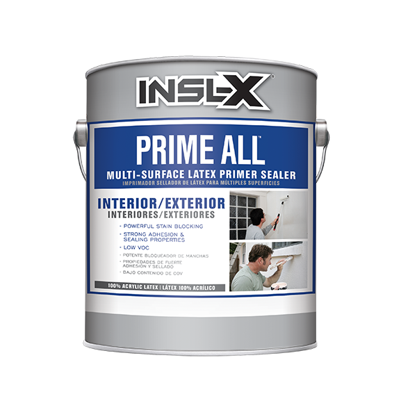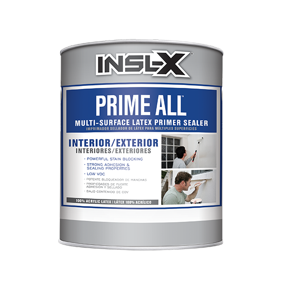 100% acrylic interior and exterior primer for all surfaces. Mildew resistant, quick dry, spatter proof with great flow and leveling. Formulated to suppress most stains.
